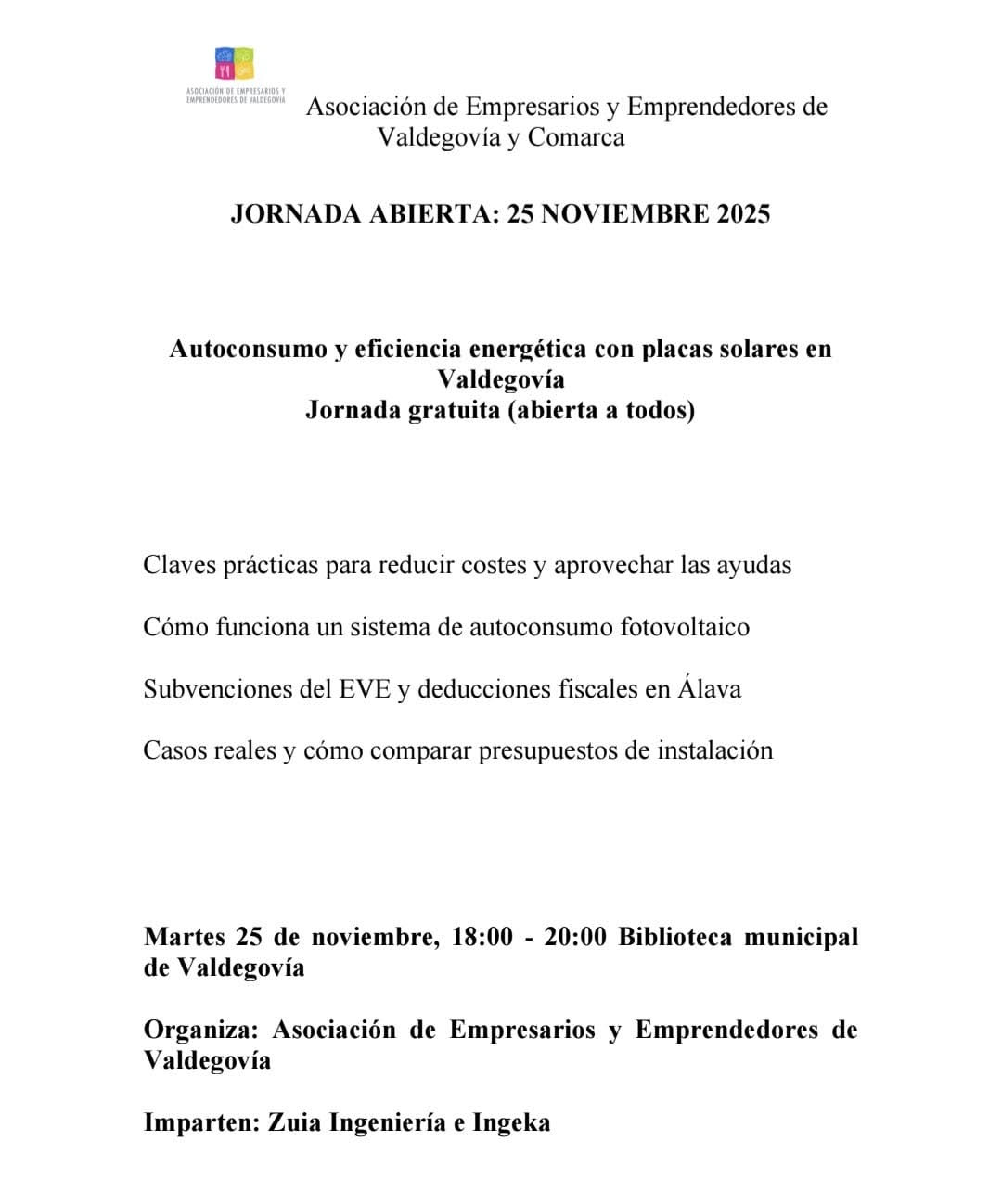 Gaubeako eta Eskualdeko Enpresarien eta Ekintzaileen Elkarteak datorren asteartean, azaroaren 25ean, 18:00etatik 20:00etara, autokontsumoari eta eguzki-plaken bidezko energia-eraginkortasunari eskainitako jende guztiarentzako jardunaldia antolatu du. Saioa Udal Liburutegiko Gelan izango da eta parte-hartzea guztiz doakoa da.