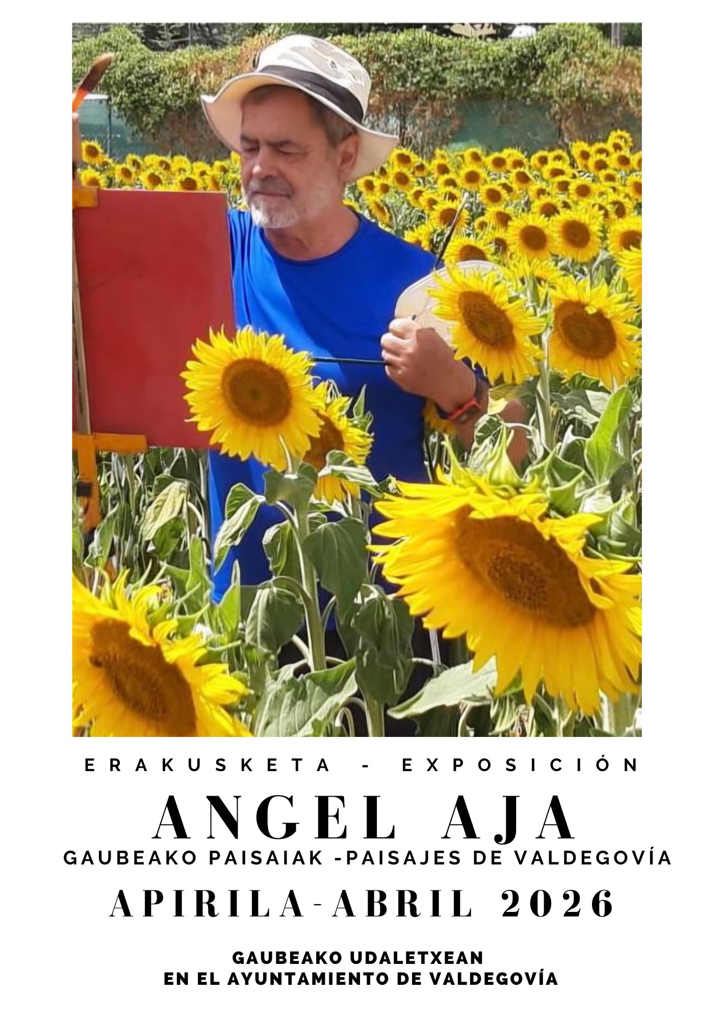 Angel Aja, vecino de Espejo, ha mutado los colores tristes y oscuros de los Altos Hornos de Barakaldo por los amplios espacios llenos de colorido del Valle de Valdegovïa, trasladando sus pinceles a los campos de trigo y a los suaves remansos del río Omecillo.